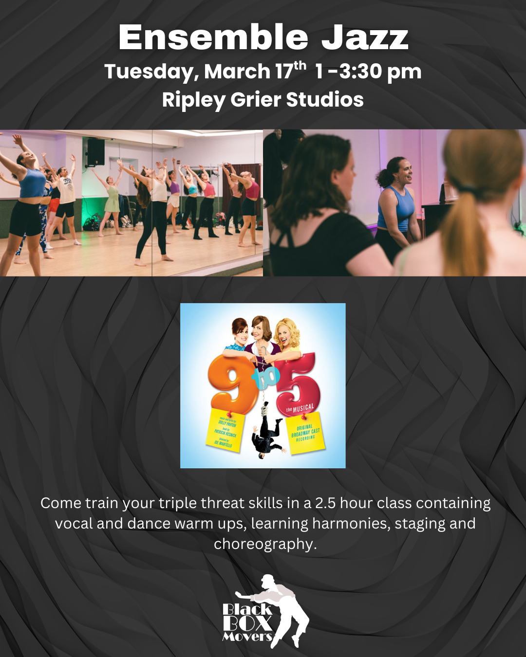 Come train your triple threat skills in a 2.5 hour class containing vocal and dance warm ups, learning harmonies, staging and choreography.