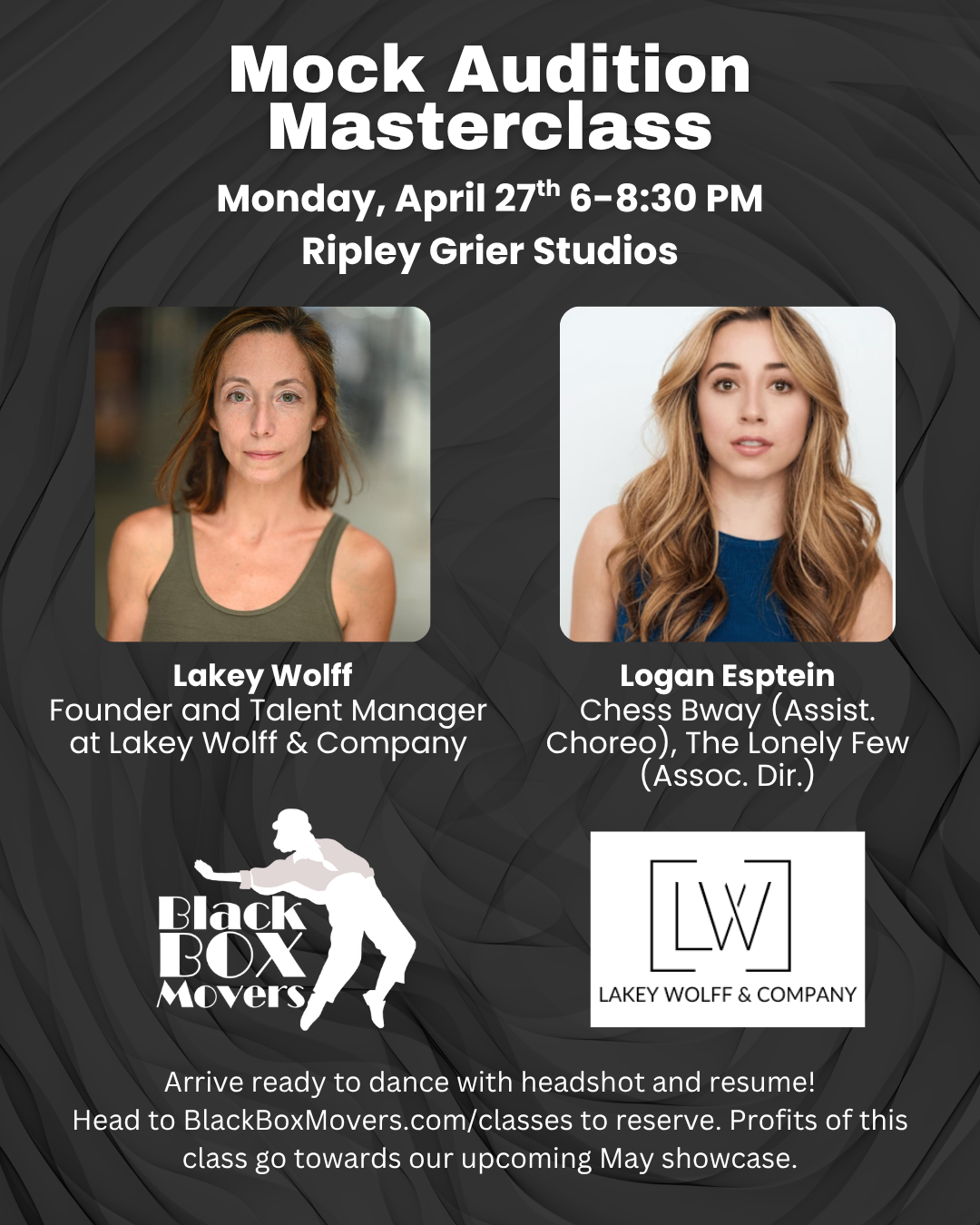 Join BBM at a Mock Audition Masterclass with Lakey Wolff and Logan Epstein. We are so excited to offer our first Talent Agency Mock Audition this spring!